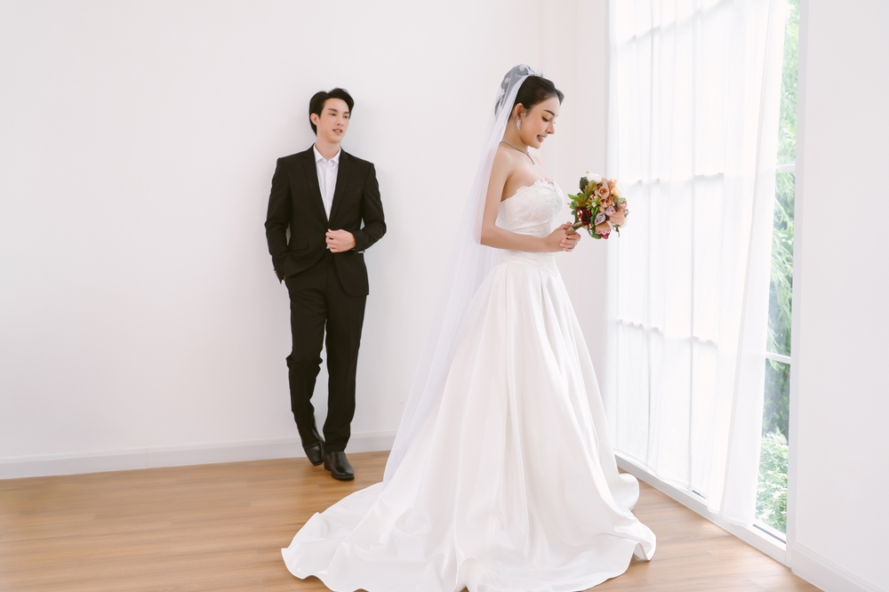 新郎はタキシード、新婦は白もしくは色ドレスを着用して撮影するプランです。新郎新婦の美容着付けもついています。